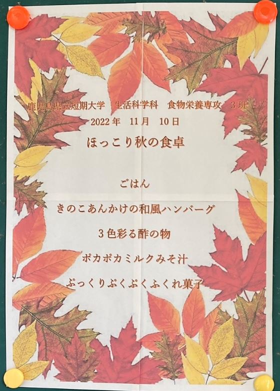 3班による ほっこり秋の食卓 (写真はクリックすると拡大できます)
